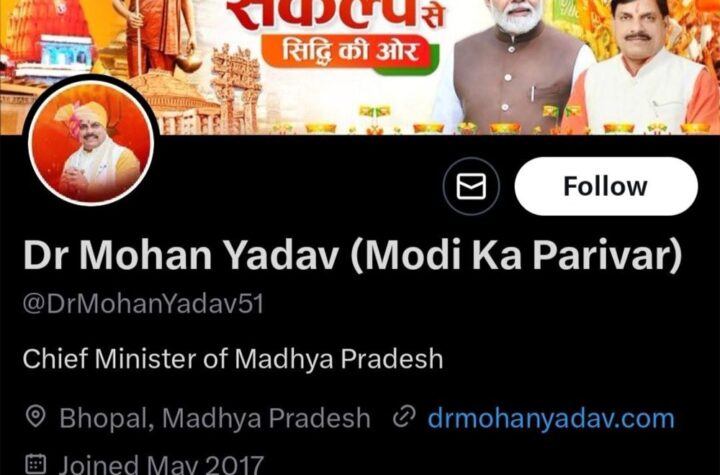 भोपाल मध्य प्रदेश के मुख्यमंत्री डॉ. मोहन यादव ने अपने सोशल मीडिया अकांटस एक्स प्रोफाइल में नाम के आगे लिखा...