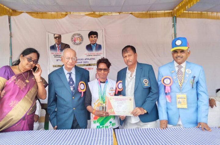 हैदराबाद तेलंगाना बालयोगी स्टेडियम में 8 फरवरी से 11 फरवरी 2024 तक आयोजित मंडला ऑल इंडियन नेशनल मास्टर एथलेटिक चैंपियनशिप...