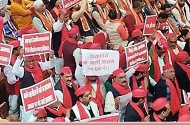 लखनऊ उत्तर प्रदेश विधानसभा के बजट सत्र के पहले दिन शुक्रवार को राज्यपाल के अभिभाषण से पहले विधान भवन परिसर...
