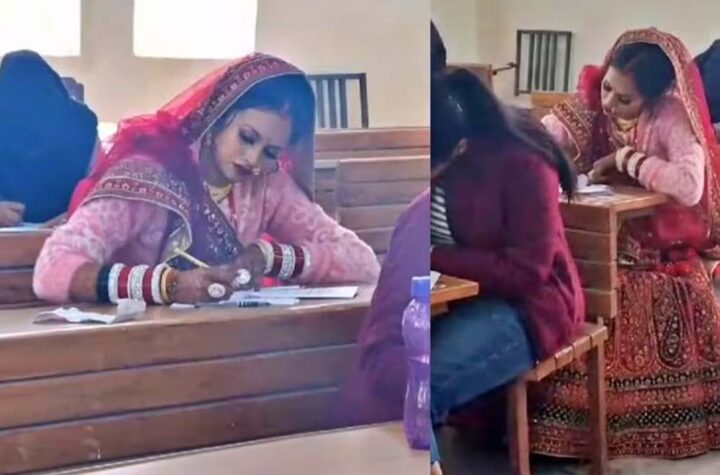 झांसी यूपी के झांसी विश्वविद्यालय में एग्जाम देने आई एक दुल्हन को देख लोग चौंक गए. रात में सात फेरे...