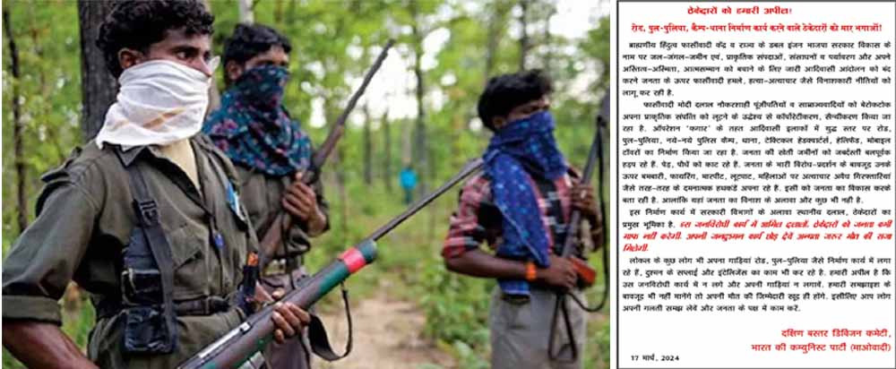 नक्सलियों ने लिखा है कि इन जनविरोधी कार्य में शामिल ठेकेदारों को जनता कभी माफ नहीं करेगी। ठेकेदार अपने कार्यों को छोड़ दें, अन्यथा मौत की सजा देने की चेतावनी नक्सलियों ने दी है। वहीं, नक्सलियों ने स्थानीय लोगों को भी अपनी गाड़ियां, रोड, पुल और पुलिया जैसे निर्माण कार्य में नहीं लगाने की अपील की है। लिखा है कि हमारी समझाइस के बावजूद भी नहीं मानेंगे तो अपनी मौत के जिम्मेदार खुद होंगे।