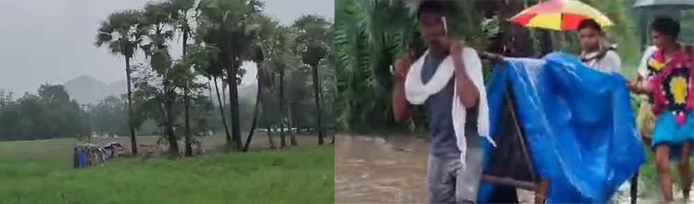बस्तर के कई जिलों में बारिश से लोगों का बुरा हाल है और इसका सीधा प्रभाव अंदरूनी इलाकों के ग्रामीणों में देखने को मिल रहा है। यहां सड़क और पुल न होने की वजह से आदिवासियों को नदी-नालों की चुनौतियों को पार करना पड़ रहा है। ऐसा ही एक वीडियो सामने आया लेंडरा गांव से सामने आया है। यहां गर्भवती महिला को प्रसव पीड़ा के बाद अस्पताल ले जाना था, लेकिन इलाके में पक्की सड़क, पुल-पुलिया न होने और नदी-नाले लबालब होने की वजह से एंबुलेंस गांव तंक नहीं पहुंच पाई।