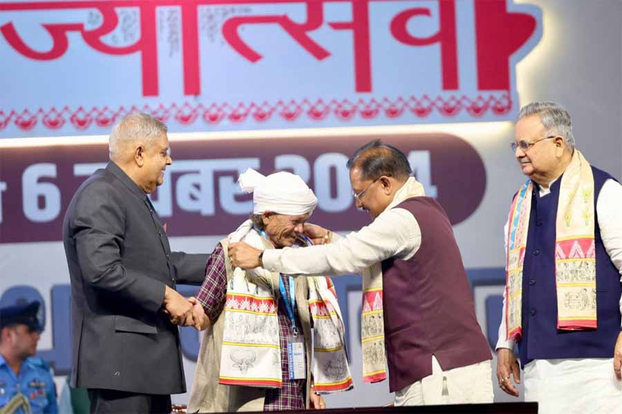 उप राष्ट्रपति श्री जगदीप धनखड ने आज छत्तीसगढ़ राज्योत्सव के राज्य अलंकरण समारोह में छत्तीसगढ़ के 36 अलंकरण से विभिन्न क्षेत्रों से उत्कृष्ट योगदान देने वाले 37 विभूतियों एवं 4 संस्थाओं को सम्मानित किया। राज्यपाल श्री रमेन डेका ने समारोह की अध्यक्षता की। अति विशिष्ट अतिथि के रूप में मुख्यमंत्री श्री विष्णु देव साय और विधानसभा अध्यक्ष डॉ. रमन सिंह उपस्थित रहे।