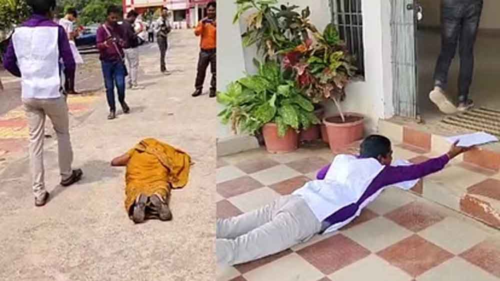 छत्तीसगढ़-सारंगढ़-बिलाईगढ़ दंडवत करते कलेस्ट्रेट पहुंचे पति-पत्नी, ‘इतनी बार मंदिर जाते तो भगवान दर्शन दे देते’