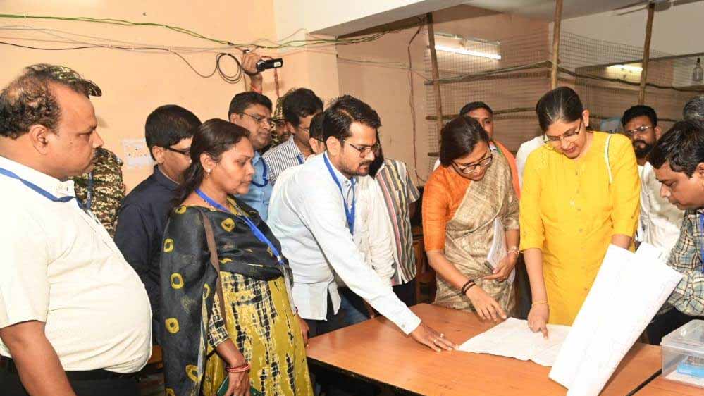 मतगणना की तैयारियों का जायजा लेने आज दुर्ग पहुंची मुख्य निर्वाचन पदाधिकारी श्रीमती रीना बाबासाहेब कंगाले ने निर्वाचन कर्तव्य के दौरान मृत महिलाकर्मी श्रीमती मधु बंजारे के दोनों पुत्रों को अनुग्रह प्रतिकर राशि के कुल 15 लाख रूपए की राशि का चेक प्रदान किया। उन्होंने दुर्ग के सर्किट हाउस में आज स्वर्गीय श्रीमती मधु बंजारे के पुत्रों नितिन कुमार बंजारे को साढ़े सात लाख रुपए और विपिन कुमार बंजारे को साढ़े सात लाख रुपए का चेक प्रदान किया।