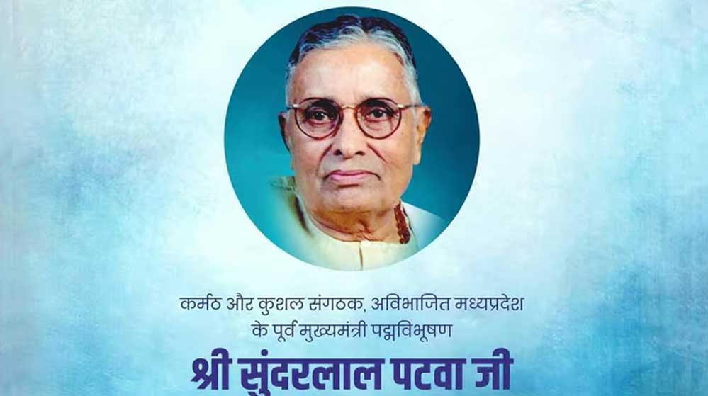 मुख्यमंत्री डॉ. मोहन यादव ने प्रदेश के पूर्व मुख्यमंत्री, पथ प्रदर्शक स्व. सुंदरलाल पटवा की जयंती पर कोटि-कोटि नमन किया है। मुख्यमंत्री डॉ. यादव ने कहा कि प्रदेश के विकास में पटवा ने जीवन समर्पित किया। मुख्यमंत्री डॉ. यादव ने कहा कि विलक्षण राजनेता एवं जनसेवक के रूप में प्रदेशवासियों के हृदय में सदा स्मरणीय रहेंगे।