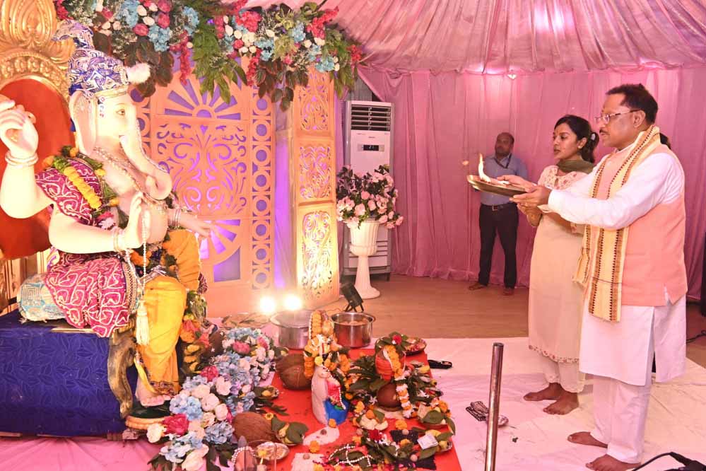मुख्यमंत्री श्री विष्णु देव साय ने आज यहां अपने निवास में विराजे भगवान श्री गणेश का पूरे विधि-विधान से पूजन-हवन किया और प्रदेशवासियों की सुख-समृध्दि की कामना की। मुख्यमंत्री श्री साय ने सभी प्रदेशवासियों को अंनत चतुर्दशी की बधाई एवं शुभकामनाएं दीं।  इस अवसर पर मुख्यमंत्री श्री साय के परिवारजन व अधिकारी-कर्मचारीगण उपस्थित थे।