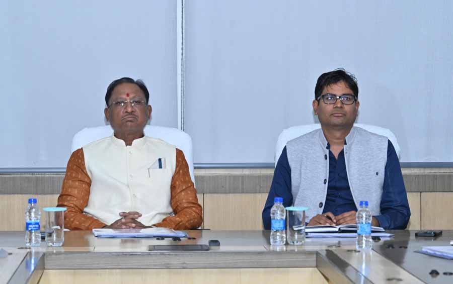 मुख्यमंत्री श्री विष्णु देव साय ने मंगलवार को मंत्रालय महानदी भवन, नवा रायपुर में अपने विभागों की बजट तैयारियों की समीक्षा की। बैठक में वित्त मंत्री श्री ओ.पी.चौधरी, सचिव वित्त श्री अंकित आनंद, मुख्यमंत्री के सचिव श्री पी. दयानंद सहित संबंधित विभागों के वरिष्ठ अधिकारी उपस्थित हैं। मुख्यमंत्री ने सामान्य प्रशासन, खनिज साधन, ऊर्जा, जनसंपर्क, वाणिज्यिक कर (आबकारी), परिवहन, इलेक्ट्रॉनिक्स और सूचना प्रौद्योगिकी, विमानन, पशु पालन, मत्स्य पालन एवं आयाकट, ग्रामोद्योग विभाग की बजट तैयारियों की समीक्षा की।