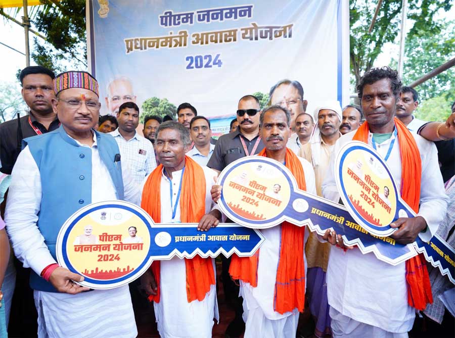 मुख्यमंत्री श्री विष्णुदेव साय ने आज बगिया प्रवास के दौरान अपने निवास में आयोजित संक्षिप्त कार्यक्रम में पीएम जनमन योजना के तीन लाभार्थियों को नवनिर्मित घर की चाबी सौंपी। इस दौरान तीनों लाभार्थियों ने बांस से बनी टोकरी में आम, फल्ली और केला भेंटकर मुख्यमंत्री श्री साय के प्रति आभार व्यक्त किया। आदिवासी समुदाय के आर्थिक-सामाजिक उत्थान के लिए शुरू की गई पीएम जनमन योजना के तहत जिले के पहाड़ी कोरवा, बिरहोर लोगों को लाभ मिल रहा है।