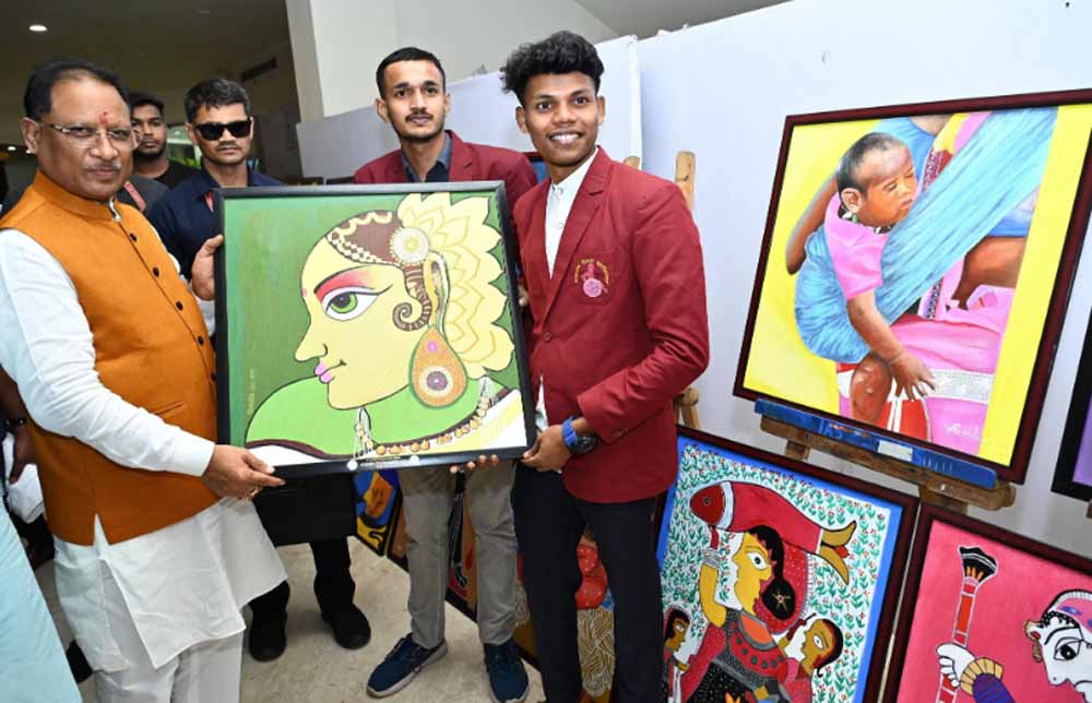 मुख्यमंत्री ने शासकीय दिव्यांग महाविद्यालय, माना कैम्प के मूक-बधिर विद्यार्थियों द्वारा लगाई गई चित्रकला प्रदर्शनी का भी अवलोकन किया। इस दौरान छात्र धनदास बरमते ने स्वनिर्मित लोककला आधारित चित्र मुख्यमंत्री को भेंट किया। मुख्यमंत्री ने इस उपहार को स्वीकारते हुए धनदास की कला की प्रशंसा की और कहा, "आपकी यह कला हमारी संस्कृति को नई पहचान देने का कार्य करेगी।" उन्होंने धनदास के उज्ज्वल भविष्य की कामना की।