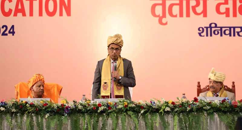 जस्टिस चंद्रचूड़ शनिवार को लखनऊ के विधि विश्वविद्यालय में आयोजित दीक्षांत समारोह को संबोधित कर रहे थे। कार्यक्रम में मुख्यमंत्री योगी आदित्यनाथ सहित कई गणमान्य लोग मौजूद रहे।
