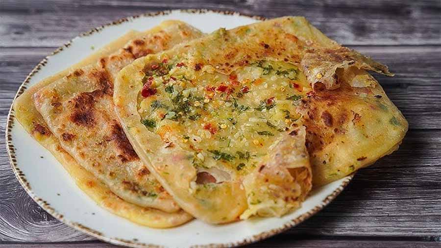 बस फिर गरमागरम चिली गार्लिक पराठे को दही, अचार या सब्जी के साथ गरमागरम सर्व करें।