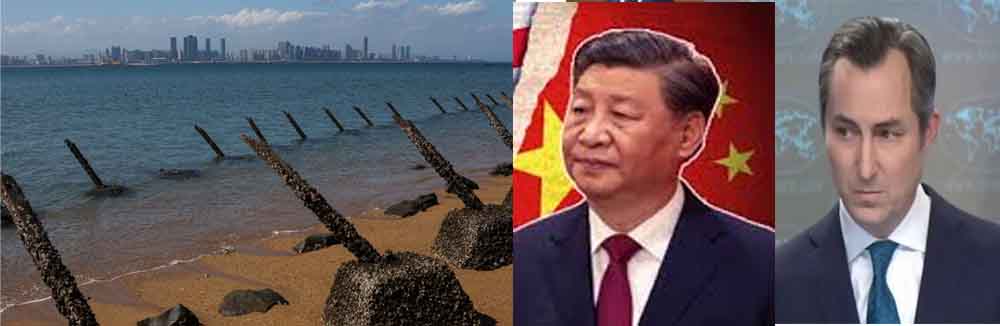 ताइवान के आसपास चीन के सैन्य अभ्यासों पर अमेरिका ने गहरी चिंता जताई है। अमेरिकी विदेश विभाग के प्रवक्ता मैथ्यू मिलर ने चीन से संयम से काम लेने का आग्रह किया। मीडिया रिपोर्ट के मुताबिक, अमेरिकी विदेश का यह बयान तब सामने आया है जब चीन ने गुरुवार और शुक्रवार (23-24 मई) को दो दिवसीय सैन्य अभ्यास किया। इस सैन्य अभ्यास में जमीन, समुद्र, वायु और रॉकेट बल शामिल थे।