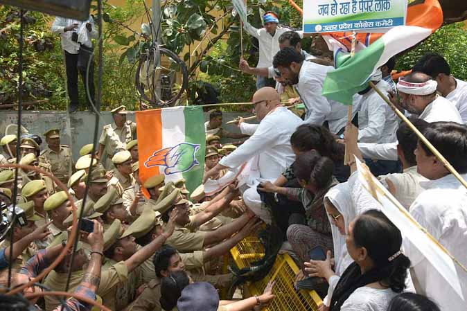प्रदेश अध्यक्ष अजय राय के नेतृत्व में कार्यकर्ता प्रदेश मुख्यालय से विधान सभा घेराव के लिए निकले। हालांकि थोड़ा ही आगे चलने पर बैरिकेडिंग कर पुलिस ने सभी को रोक लिया। यहां कार्यकर्ताओं की पुलिस से तीखी नोकझोंक हुई। इसी बीच अजय राय समेत पार्टी नेता बैरिकेडिंग लांघकर आगे बढ़ने लगे। पुलिस ने बलपूर्वक उनको रोका और यहां भी काफी धक्का मुक्की हुई।