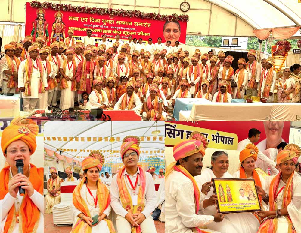 प्रजापिता ब्रह्माकुमारी ईश्वरीय विश्व विद्यालय के अंतर्राष्ट्रीय मुख्यालय माउंट आबू से पधारी राजयोगिनी ब्रह्माकुमारी उषा दीदी के भोपाल आगमन पर नर्मदापुरम रोड स्थित उत्सव गार्डन में भव्य एवं दिव्य युगल सम्मान समारोह आयोजित किया गया । इस भव्य एवं आलोकिक आयोजन में ब्रह्माकुमारीज ब्लेसिंग हाउस भोपाल के 65 युगल जोड़ों का सम्मान किया गया । ये 65 युगल जोड़े पिछले अनेक वर्षों से ब्रह्माकुमारीज संस्थान मे दिए जा रहे ईश्वरीय ज्ञान एवं सहज राजयोग का अभ्यास करते हैं । प्रतिदिन ब्रह्माकुमारी संस्थान के सेवाकेंद्रों में होने वाली ज्ञान मुरली का श्रवण करते हैं। विश्व शांति के लिए राजयोग मेडिटेशन करते हैं। साथ ही दिव्य गुणों को अपने जीवन में अपनाते हैं। अपने कार्य मे से समय निकालकर ईश्वरीय सेवा भी करते हैं।इन 65 पति पत्नी के जोड़ों का आज नर्मदापुरम भोपाल स्थित उत्सव मैरिज गार्डेन में एव भव्य दिव्य समारोह में सम्मान किया गया । माउंट आबू से पधारी अंतर्राष्ट्रीय ख्याति प्राप्त वक्ता राजयोगिनी उषा दीदी के सानिध्य में युगलों को सुंदर रीति से सजाया गया, साथ ही उषा दीदी ने उन्हे युगल जीवन की विशेषताएं एवं मर्यादाएं बताईं। एवं युगलों का विभिन्न रीति से सम्मान किया गया ।