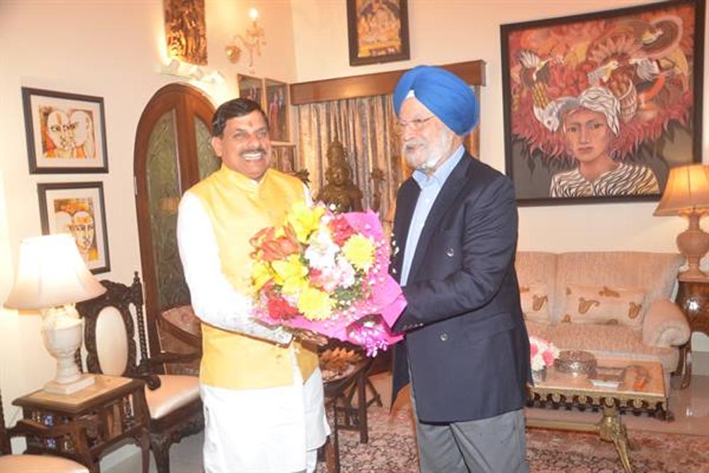 मुख्यमंत्री डॉ. मोहन यादव ने केंद्रीय आवासन और शहरी कार्य एवं पेट्रोलियम और प्राकृतिक गैस मंत्री हरदीप सिंह पुरी से उनके निवास पर सौजन्य भेंट की और प्रदेश के विकास से जुड़े उनके मंत्रालय से संबंधित विविध विषयों पर विस्तृत चर्चा की। मुख्यमंत्री डॉ. यादव ने बताया कि प्रधानमंत्री आवास योजना जैसी आवासन और शहरी कार्य योजनाओं में प्रदेश उत्कृष्ट प्रदर्शन कर रहा है। उन्होंने आशा व्यक्त की कि भविष्य में भी प्रधानमंत्री नरेंद्र मोदी के नेतृत्व में प्रदेश के स्थानीय निकाय और अधिक प्रगति करेंगे। केंद्रीय मंत्री पुरी ने अपने मंत्रालय से संबंधित सभी प्रकरणों में राज्य सरकार को हरसंभव सहायता देने के आश्वासन दिया।