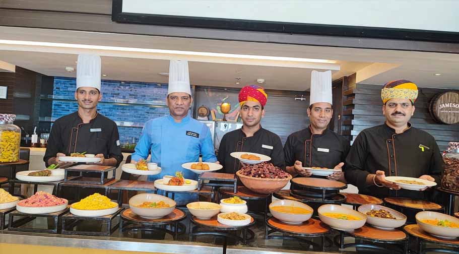 अमोल पाटिल, एक्जीकिटिव शेफ, कोर्टयार्ड बाय मैरियट, भोपाल ने बताया कि इस फूड फेस्टीवल के लिए खासतौर पर राजस्थान से शेफ पूनम शर्मा एवं शेफ नरपत सिंह राजपुरोहित को आमंत्रित किया गया है। दोनों शेफ अपनी टीम के साथ मिलकर मेहमानों के लिए राजस्थान के परंपरागत वेज एवं नॉनवेज व्यंजनों तैयार करेंगे। इन व्यंजनों की लम्बी फेहरिस्त में जोधपुरी पनीर के सूले, बाजरा पुदीने की टिक्की, शेखावटी दाल पकौड़ी, सांगरी के कवाब, बीकानेरी तवा मच्छी तथा मथानिया मुर्ग टिक्का जैसे स्टार्टर्स होंगे। वहीं बाजरे की राब के स्वादिष्ट सूप का मजा भी मेहमान ले सकेंगे। मेन कोर्स में वेजीटेरियन्स के लिए पनीर राजवाड़ा, जोधपुरी पनीर, मारवाड़ी धनिया मंगोड़ी, चक्की की सब्जी, जयपुरी भिण्डी, लहसुनी पालक सांगरी, सब्ज पंचमेला, केर सांगरी, मलाई प्याज, मिक्स्ड वेजीटेबल खिचड़ी, गट्टे का पुलाव आदि शामिल रहेंगे। वहीं नॉनवेज प्रेमियों के लिए जोधपुरी मुर्ग, लाल मांस, बाजरे का सोयता सहित बहुत से व्यंजन सर्व किये जाएंगे। भोजन के दौरान मेहमान बीच-बीच में खट्ठे-मीठे जलजीरे, ठण्डी छाछ और अन्य वेलकम ड्रिंक्स की चुस्कियां भी ले सकेंगे। इसके अतिरिक्त फेस्टीवल के दौरान लाइव काउंटरों पर मिर्ची वड़ा चाट, कढ़ी कचौरी तथा दाल-बाटी-चूरमा भी उपलब्ध रहेंगे।