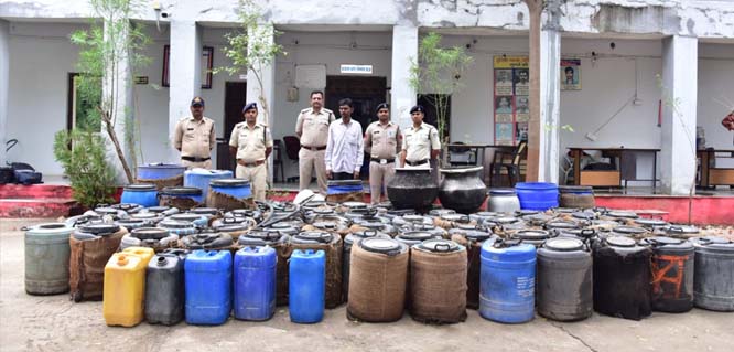 शराब बनाने के लिए रखे 100 ड्रम करीब 5000 किलो महुआ लहान कीमती ढाई लाख रुपए का नष्ट किया।