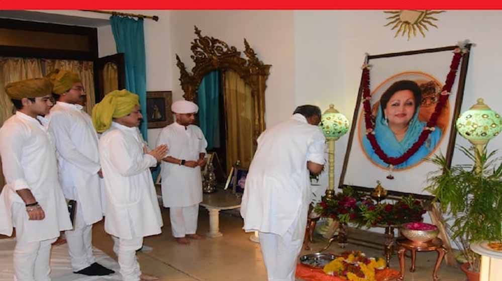 इसके बाद दिग्विजय सिंह जयविलास पैलेस पहुंचे। वहां पहुंचकर दिवंगत माधवी राजे के चित्र पर पुष्प अर्पित कर श्रद्धांजलि दी। उन्होंने ज्योतिरादित्य सिंधिया और महाआर्यमन सिंधिया से बात कर उन्हें सांत्वना दी। दिग्विजय सिंह 2020 में सिंधिया के कांग्रेस छोड़कर भाजपा में जाने के बाद पहली बार जयविलास पैलेस पहुंचे। सिंह से मीडिया से भी बातचीत की। उन्होंने कहा कि मैं ग्वालियर आया हूं स्वर्गीय राजमाता के देहांत पर श्रद्धांजलि देने और ज्योतिरादित्य सिंधिया और उनके परिवारजनों से मिलने के लिए। जब उनसे भाजपा के चार सौ पर के नारे को लेकर सवाल पूछा गया तो वे जवाब दिए बिना ही आगे बढ़ गए।