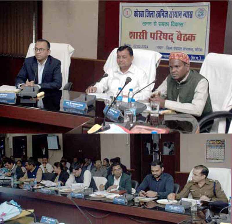 देवांगन ने कहा कि कोरबा आदिवासी बाहुल जिला है और प्रधानमंत्री ने जिले के खनिजों से प्राप्त रायल्टी से संबंधित जिले के विकास हो सके इसके लिए अनेक अधिकार परिषद को दिए हैं। डीएमएफ से जिले में स्कूल, आंगनबाड़ी, स्वास्थ्य सुविधा सहित आवश्यकतानुसार अधोसंरचना की पूर्ति की जा सकती हेै। बैठक में उन्होंने विभागों और जन प्रतिनिधियों से प्राप्त विकास कार्यों के प्रस्तावों पर चर्चा की और कहा कि जिले के विकास से संबंधित प्रस्तावों को शीघ्र ही प्रस्तुत करें। विधायक कटघोरा श्री प्रेमचंद पटेल, विधायक रामपुर श्री फूलसिंह राठिया और जिला पंचायत अध्यक्ष श्रीमती शिवकला कंवर ने भी सम्बोधित किया। कलेक्टर श्री अजीत वसंत ने शासी परिषद अन्तर्गत बैठक के विषय में विस्तार से जानकारी दी। बैठक में शासी परिषद के सभी सदस्य, अधिकारी पुलिस अधीक्षक जितेंद्र शुक्ला, जिला पंचायत सीईओ संबित मिश्रा, डीएफओ श्री अरविंद पीएम, कुमार निशांत, नगर निगम कोरबा आयुक्त श्रीमती प्रतिष्ठा ममगाई उपस्थित थीं।