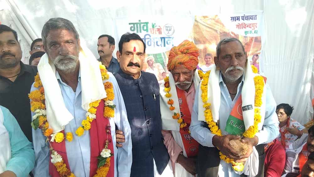 भारतीय जनता पार्टी के गाँव चलो अभियान के अंतर्गत वरिष्ठ नेता डॉ. नरोत्तम मिश्रा शनिवार को दतिया के बडौनी स्थित गोविंदपुर गाँव पहुंचे। डॉ मिश्रा कार्यकर्ताओ के साथ रात्रि विश्राम भी किया। डॉ. मिश्रा के पहुँचने पर ग्रामीणों ने उनका आत्मीय स्वागत किया। इस अभियान के तहत पार्टी के सभी नेता गांवों में रात्रि विश्राम कर रहे है।