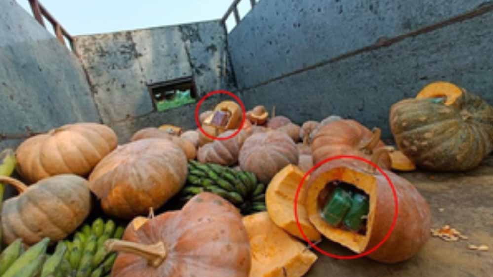 असम राइफल्स और मणिपुर पुलिस ने कद्दू के अंदर छिपाकर रखी गई 3.5 करोड़ रुपये मूल्य की हेरोइन जब्त की, जिसके पड़ोसी देश म्यांमार से तस्करी कर लाए जाने का संदेह है। पुलिस ने कहा कि एक गुप्त सूचना पर कार्रवाई करते हुए, सुरक्षाबलों ने जिरीबाम में फ़िरज़ावल जिले के टिपाईमुख से दक्षिणी असम के कछार की ओर जा रहे एक पिकअप ट्रक को रोका और दो ड्रग तस्करों- अब्दुल मन्नान मजूमदार और खलील उल्ला बारभुइया को गिरफ्तार किया।