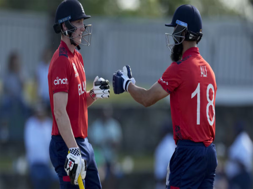 बात इंग्लैंड वर्सेस नामीबिया मुकाबले की करें तो, बारिश से बाधित इस मुकाबले में इंग्लिश टीम ने पहले बल्लेबाजी करते हुए 10 ओवर में 5 विकेट के नुकसान पर 122 रन बोर्ट पर लगाए। टीम को इस स्कोर तक पहुंचाने में अहम भूमिका विस्फोटक बल्लेबाज हैरी ब्रूक ने अदा की। ब्रूक ने 20 गेंदों पर 4 चौकों और 2 गगनचुंबी छक्कों की मदद से 47 रनों की धुआंधार पारी खेली। उनके अलावा जॉनी बेयरस्टो ने 18 गेंदों पर 31 रन बनाए।