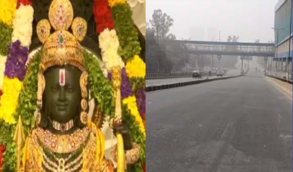 राममंदिर प्राण प्रतिष्ठा के वक्त देश ठहर सा गया। दिल्ली-एनसीआर की दौड़ती-भागती जिंदगी भी कुछ पलों के लिए शांत हो गई। लोग या तो मंदिरों में पूजा-पाठ करते रहे या फिर घर में टीवी के सामने बैठकर प्राण प्रतिष्ठा का साक्षी बने। दिल्ली, नोएडा और गाजियाबाद जैसे शहरों में लॉकडाउन सा नजारा दिखा। सड़कें सुनसान थी तो रेलवे स्टेशन पर भी खामोशी दिखी। बस स्टैंड भी खाली था। जो कुछ लोग घर से बाहर थे वे भी मोबाइल पर लाइव प्रसारण देखते रहे।