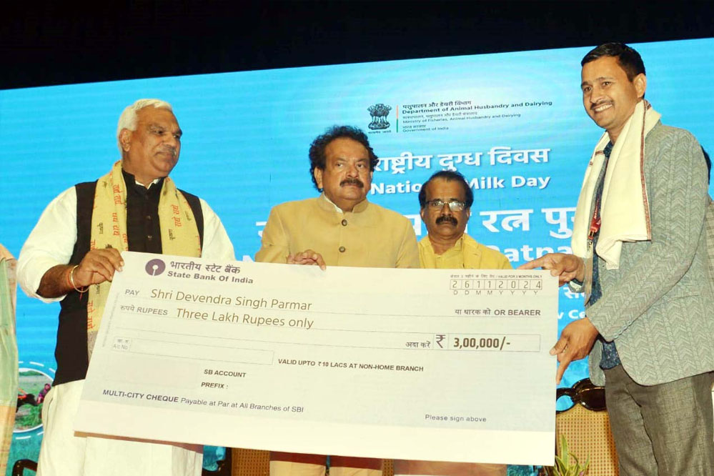 केंद्रीय पशुपालन मंत्री ने देवेन्द्र परमार को दिल्ली में प्रदान किया पुरस्कार