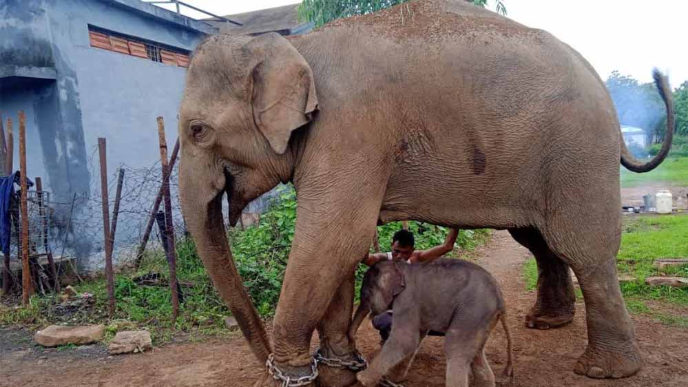 पन्ना में मादा हाथी केनकली ने दिया मादा शावक को जन्म