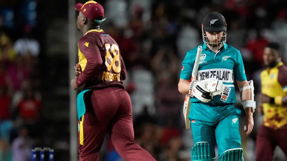 पहले मैच में हार के बाद न्यूजीलैंड का अगला मुकाबला मेजबान वेस्टइंडीज से था। टूर्नामेंट में बने रहने के लिए कीवी टीम को यह मैच जीतना जरूरी था। लेकिन वेस्टइंडीज के खिलाफ तेज गेंदबाजों का जल्दी इस्तेमाल करने का केन विलियमसन का दांव उनकी टीम के लिए उलटा पड़ गया। मैच के 18वें ओवर तक ट्रेंट बोल्ट (चार ओवर में 16 रन पर तीन विकेट) और लॉकी फर्ग्यूसन (चार ओवर में 27 रन पर दो विकेट) के ओवर खत्म हो गए और विलियमसन को आखिरी दो ओवरों के लिए मध्यम तेज गेंदबाज डेरिल मिचेल और बाएं हाथ के स्पिनर मिचेल सैंटनर पर निर्भर रहना पड़ा। वेस्टइंडीज के बल्लेबाज शेरफेन रदरफोर्ड ने इसका फायदा उठाते हुए 39 गेंदों में नाबाद 68 रन बनाए। इस दौरान उन्होंने आखिरी दो ओवर मे चार छक्कों सहित 37 रन बनाए।
