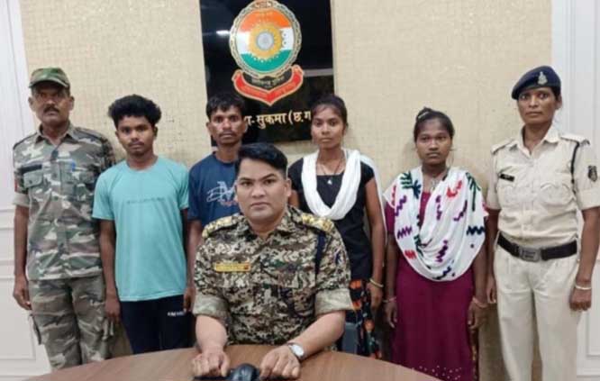 जिले में चलाये जा रहे नक्सल उन्मूलन अभियान के तहत छत्तीसगढ़ नक्सलवाद उन्मूलन एवं पुनर्वास नीति एवं सुकमा पुलिस द्वारा चलाये जा रहे "नियद नेल्ला नार योजना से प्रभावित तथा अति संवेदनशील अंदरूनी क्षेत्रों में लगातार कैम्प स्थापित होने से पुलिस के बढ़ते प्रभाव के परिणाम स्वरूप नक्सली संगठन में सक्रिय दो महिला नक्सली सहित चार नक्सलियों ने आज पुलिस अधीक्षक कार्यालय सुकमा में एएसपी नक्सल आॅप्स मनीष रात्रे के समक्ष आत्मसमर्पण कर दिया है। उक्त नक्सलियों को आत्मसमर्पण हेतु प्रोत्साहित कराने में डीआरजी एवं जिला बल सुकमा का विशेष प्रयास रहा है। आत्मसमर्पित नक्सली कई वारदातों में शामिल रहे हैं।