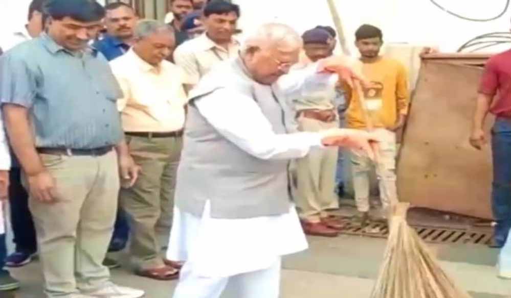 राज्यपाल पटेल ने झाड़ू लगाकर दिया स्वच्छता का संदेश