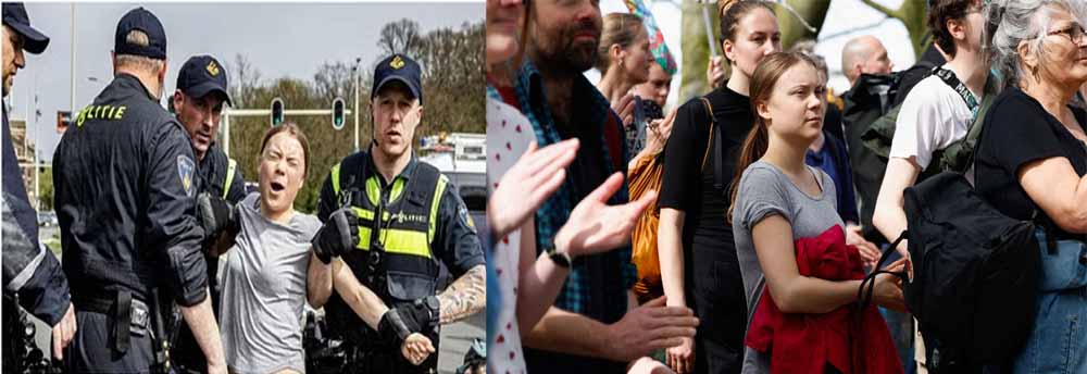जीवाश्म ईंधन सब्सिडी के विरोध में नीदरलैंड में एक प्रदर्शन के दौरान पुलिस ने पर्यावरण कार्यकर्ता ग्रेटा थनबर्ग को दो बार हिरासत में लिया था। शनिवार को ग्रेटा थनबर्ग के नेतृत्व में चल रहे प्रदर्शन के दौरान प्रमुख सड़कों को अवरुद्ध किया गया था, जिसके चलते पुलिस ने उन पर कार्रवाई की थी। पुलिस द्वारा जारी बयान के मुताबिक, शनिवार को प्रदर्शन के दौरान 400 से अधिक लोगों को हिरासत में लिया गया था, जिनमें 12 लोगों को उकसाने के आरोप में बंदी बनाया गया है।