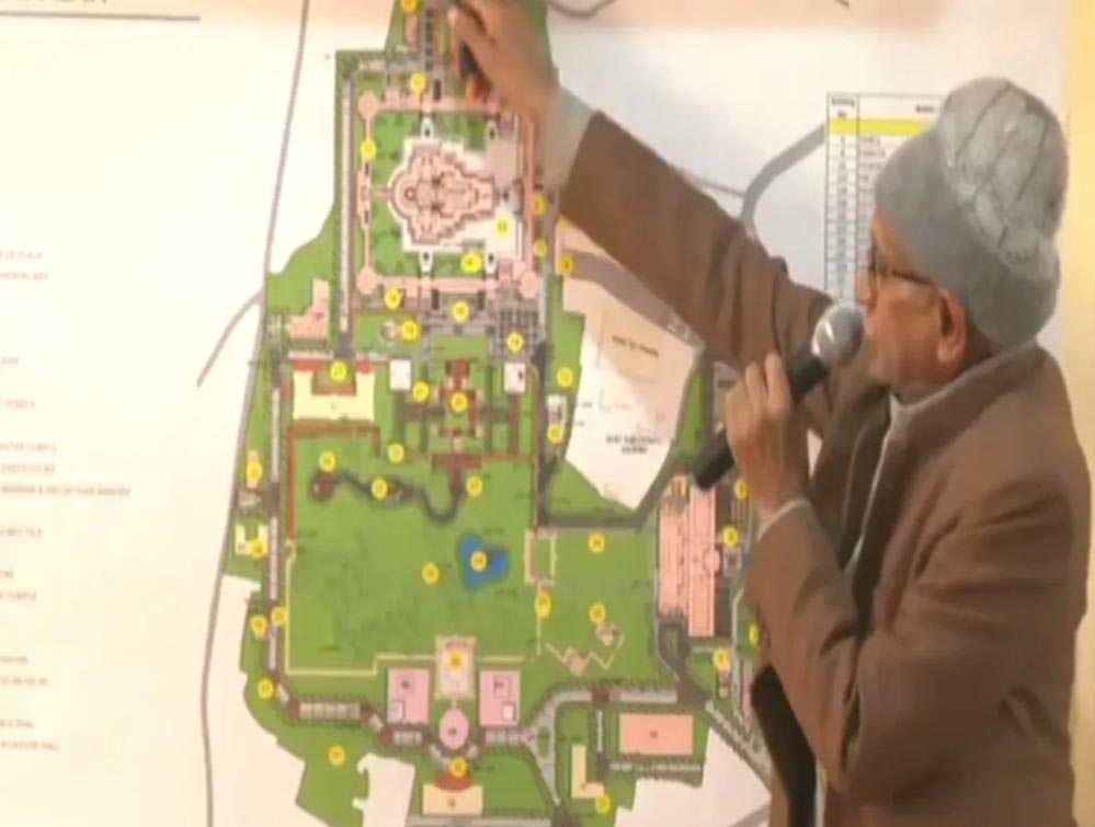 उन्होंने वीडियो के माध्यम से पूरे मंदिर का नक्शा पेश किया। चंपत राय (Champat Rai) ने बताया- "मंदिर का निर्माण 70 एकड़ भूमि के उत्तरी भाग पर किया जा रहा है। यहां तीन मंजिला मंदिर बनाया जा रहा है। मंदिर के भूतल का काम पूरा हो चुका है, पहली मंजिल निर्माणाधीन है।"