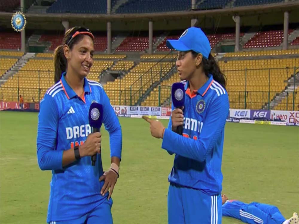 इसके बाद स्मृति ने कहा, 'दो प्रैक्टिस सेशन से इन्होंने धमकी दी, कि अगर प्रैक्टिस में बॉलिंग नहीं की ना तो मैच में बॉलिंग नहीं मिलेगी, तो आपने मुझसे प्रैक्टिस करवाया है।' इस पर हरमन ने कहा तो प्रैक्टिस तो करनी ही पड़ेगी। इसने प्रैक्टिस में भी बहुत सारे बैटर्स को आउट किया है और आकर मुझे बताती थी कि इसको आउट किया, उसको आउट किया, जिसके बाद मुझे कॉन्फिडेंस मिल गया।