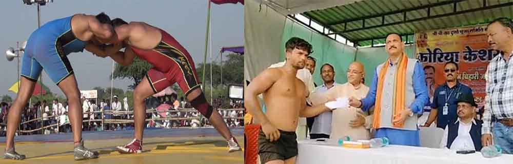 आपको बता दे की कुश्ती के इस महा दंगल आयोजन में बड़ा बाजार दुर्गा पूजा समिति के तत्वाधान में कजलियां पर्व के अवसर पर सैकड़ों पहलवान इस आयोजन में पहुंचकर  दांव लगा कर कोरिया केसरी खिताब पाने  के लिए अखाड़ा में उतरते हैं जिसमें प्रथम पुरस्कार 31 हजार रुपए के साथ कई उपहार से पुरस्कृत किए जाते हैं।