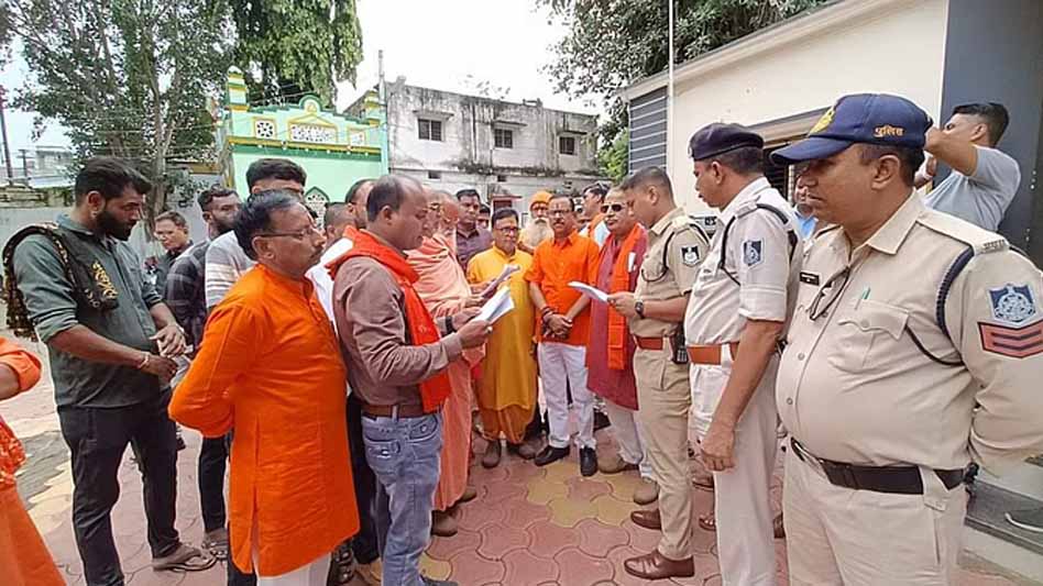 इधर, थाने पहुंचे नगर के हिन्दू जागरण मंच के जिलाध्यक्ष अजीत परदेसी ने बताया कि अभी दो दिन पहले ज्ञापन सौंपते समय भगवा आतंकवाद के नारे लगाए गए। हम इसका विरोध करते हैं। हमने इसे लेकर शिकायत की है और पुलिस ने जांच के बाद जल्द कार्रवाई की बात कही है। यदि कार्रवाई नहीं होती है तो आगे उग्र आंदोलन किया जाएगा। वहीं नर्मदानंद गिरी महाराज ने बताया कि भगवा आतंकवाद कहना गलत है। ऐसे लोगों पर कड़ी कार्रवाई की जाए।
