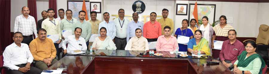 अतिविशिष्ट अतिथियों के आगमन पर उत्कृष्ट सेवा भाव से कार्य करने वाले राजभवन के अधिकारियों-कर्मचारियों को राज्यपाल के सचिव श्री यशवंत कुमार ने सम्मानित करने हुए उन्हें प्रमाण पत्र प्रदान किया।