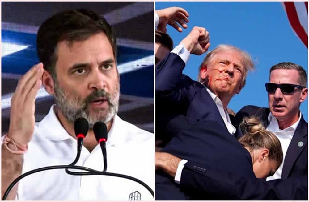 लोकसभा में विपक्ष के नेता राहुल गांधी ने अमेरिका के पूर्व राष्ट्रपति डोनाल्ड ट्रंप की हत्या की कोशिश किये जाने पर रविवार को गहरी चिंता जतायी और कहा कि ऐसे कृत्यों की कड़ी से कड़ी निंदा की जानी चाहिए। पेनसिल्वेनिया में एक चुनावी रैली के दौरान हुए हमले में कान के ऊपरी हिस्से में गोली लगने से ट्रंप (78) घायल हो गए। सीक्रेट सर्विस के एक सदस्य ने हमलावर को मार गिराया।