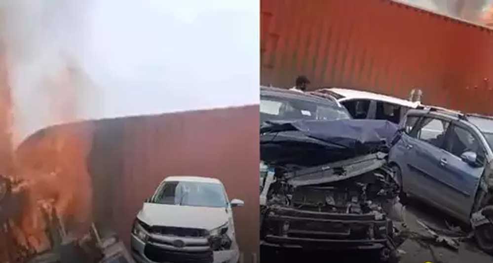 पुलिस के मुताबिक ट्रक के ब्रेक फेल होने से ये घटना हुई है। जिसमें ट्रक ने 5 कारों को टक्कर मारते हुए कंटेनर से जा टकराया। ट्रक में गेहूं भरा हुआ था जबकि कंटेनर में ऑनलाइन शापिंग कंपनियों के डिलीवरी पार्सल थे। घटना के बाद से दोनो वाहनों के ड्राइवर मौके से फरार हो गए है। मामले की जांच की जा रही है।