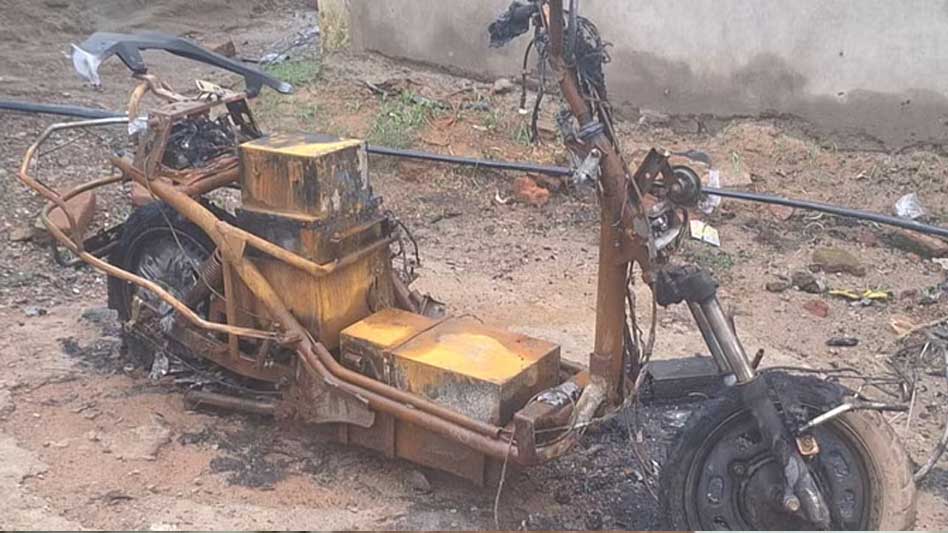 दमोह में इलेक्ट्रिक स्कूटी में चार्जिंग के दौरान आग लगने से जलकर खाक हो गई