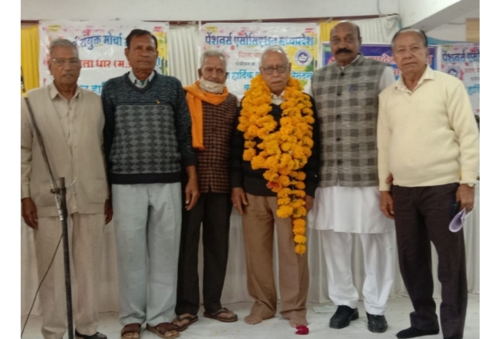 राजा भोज की नगरी में अनिल प्लाजा धार पर पेंशनर एसोसिएशन जिला धार के तत्वावधान में संभाग स्तरीय पेंशनर सम्मेलन का आयोजन चम्पालाल पाटीदार उपप्रांताध्यक्ष की अध्यक्षता में , प्रांताध्यक्ष श्याम जोशी इन्दौर के मुख्य आतिथ्य में तथा पी एल मकवाना म प्र वि म पेंशनर जिलाध्यक्ष इन्दौर, रमेशचन्द्र सोमानी सचिव म प्र वि म पेंशनर संघ इन्दौर, बाबूलाल शर्मा प्रांतीय महामंत्री पेंशनर एसोसिएशन म प्र, सत्यनारायण शोढा़, डॉ मुरलीधर शर्मा उप प्रांताध्यक्ष,विजय यादव गीतांश उज्जैन, कन्हैयालाल मन्दसौर,एस एन सोलंकी खण्डवा के विशेष आतिथ्य में किया गया।मंचासीन होने पर अतिथियों द्वारा दीप प्रज्जवलित कर सरस्वती जी को माल्यार्पण किया गया।शरद जोशी एवं श्रीमती विद्या सराठे व साथियों ने सरस्वती वंदना प्रस्तुत कर समां बांधा।स्वागत गीत जोशी ने प्रस्तुत किया। अतिथि परिचय के साथ स्वागत उद्बोधन प्रांतीय सचिव रामभरोसे वर्मा ने देते हुए दूर से व जिले से पधारे सैकड़ों पेंशनर साथीयों का हार्दिक अभिनन्दन किया ।