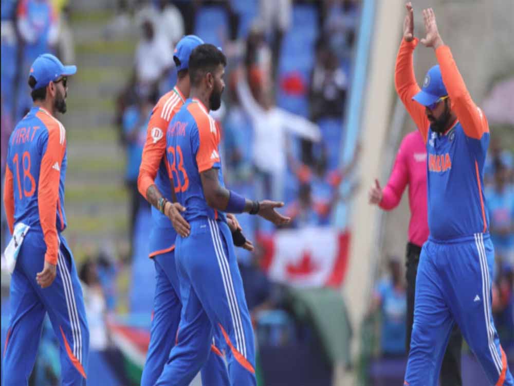 रोहित चौथे ओवर में पवेलियन लौटे। कोहली ने ऋषभ पंत (24 गेंदों में 36, चार चौके, दो सिक्स) के संग दूसरे विकेट के लिए 32 रन जोड़े। तंजीम हसन ने नौवें ओवर में भारत को डबल झटका दिया। उन्होंने पहली गेंद पर कोहली को बोल्ड किया और तूसरी पर सूर्यकुमार यादव (6) को विकेट के पीछ कैच कराया। पंत ने 12वें ओवर में अपना विकेट खोया। शिवम दुबे (24 गेंदों में 34, तीन सिक्स) ने हार्दिक के साथ बखूबी मोर्चा संभाला। दोनों ने पांचवें विकेट के लिए 53 रन की साझेदारी की। अक्षर पटेल 3 रन बनाकर नाबाद रहे। भारत को सुपर-8 में आखिरी मैच सोमवार को ऑस्ट्रेलिया से खेलना है।