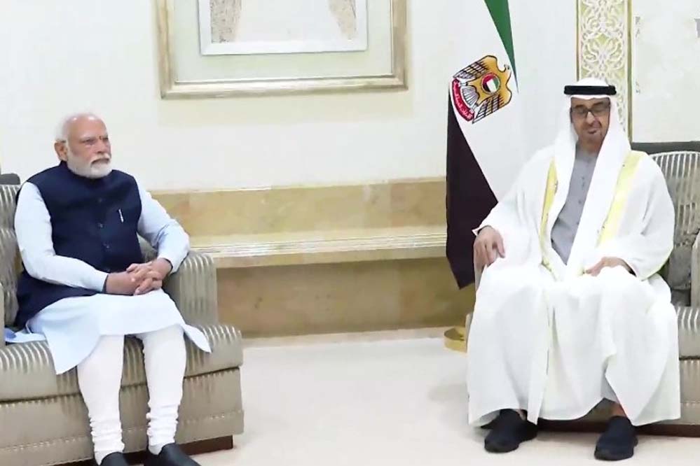 मोदी ने 'एक्स' पर लिखा, ''अबू धाबी हवाई अड्डे पर मेरे स्वागत के लिए समय निकालने के लिए मेरे भाई मोहम्मद बिन जायद के प्रति अत्यंत आभारी हूं। प्रधानमंत्री के यहां पहुंचने पर दोनों नेताओं ने परस्पर आमने-सामने और प्रतिनिधिमंडल स्तर की वार्ता की। उन्होंने द्विपक्षीय साझेदारी की समीक्षा की और सहयोग के नये क्षेत्रों पर चर्चा की। विदेश मंत्रालय ने एक बयान में कहा कि उन्होंने व्यापार और निवेश, डिजिटल बुनियादी ढांचे, फिनटेक, ऊर्जा, बुनियादी ढांचे, संस्कृति और लोगों से लोगों के संबंधों सहित सभी क्षेत्रों में व्यापक रणनीतिक साझेदारी को गहरा करने का स्वागत किया। चर्चा में क्षेत्रीय और वैश्विक मुद्दे भी शामिल रहे।