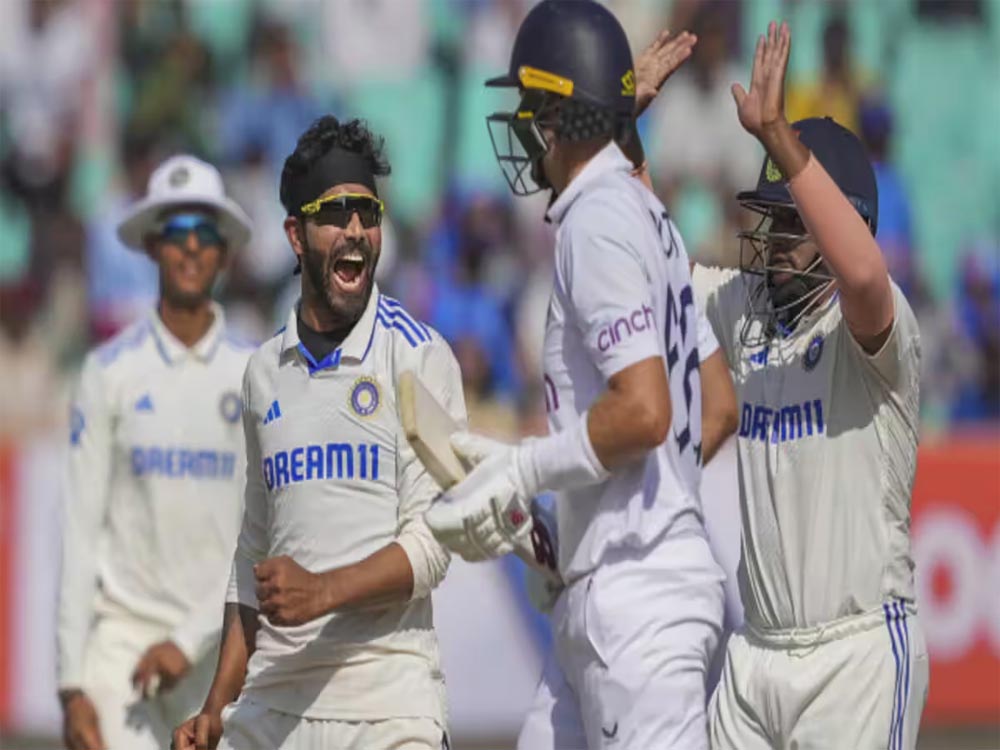 भारत को आखिरी सफलता रविंद्र जडेजा ने दिलाई। उन्होंने अपना पंजा खोला। जडेजा ने मार्क वुड को 33 रन के निजी स्कोर पर यशस्वी जायसवाल के हाथों कैच आउट कराया और इंग्लैंड को ऑलआउट कर दिया।आर अश्विन ने अगले ही ओवर में टॉम हार्टली को क्लीन बोल्ड कर दिया। इस तरह इंग्लैंड को 9वां झटका लगा।