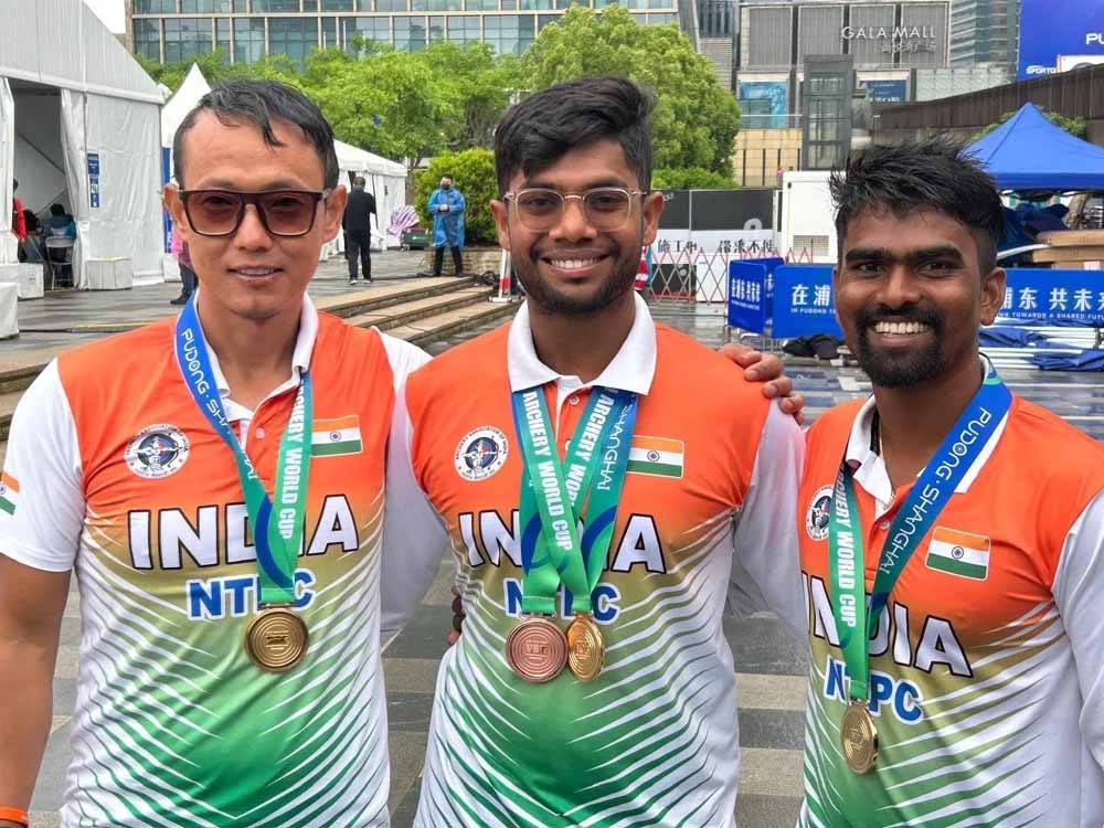 भारतीय पुरुष रिकर्व टीम के धीरज बोम्मदेवरा, तरुणदीप राय और प्रवीण जाधव ने मौजूदा ओलंपिक चैम्पियन दक्षिण कोरिया को पछाड़ते हुए रविवार को यहां 14 साल बाद तीरंदाजी विश्व कप में ऐतिहासिक जीत हासिल की। यह विश्व कप के अंतिम मुकाबले में भारतीय पुरुष रिकर्व टीम की पहली जीत है और इससे आगामी पेरिस ओलंपिक में जगह पक्की करने की उनकी संभावनाओं को बल मिलेगा। भारतीय तीरंदाजों ने 5-1 से स्वर्ण पदक अपने नाम किया। अभी तक तीरंदाजी विश्वकप में भारत ने पांच स्वर्ण, एक रजत और एक कांस्य पदक जीता है।
