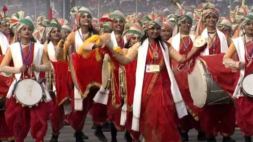 राजधानी दिल्ली में कर्तव्यपथ पर गणतंत्र दिवस की परेड 'आह्वान' के साथ शुरू हुई। परेड की शुरुआत 100 से अधिक महिला कलाकारों द्वारा भारतीय संगीत वाद्ययंत्र बजाते हुए की गई।