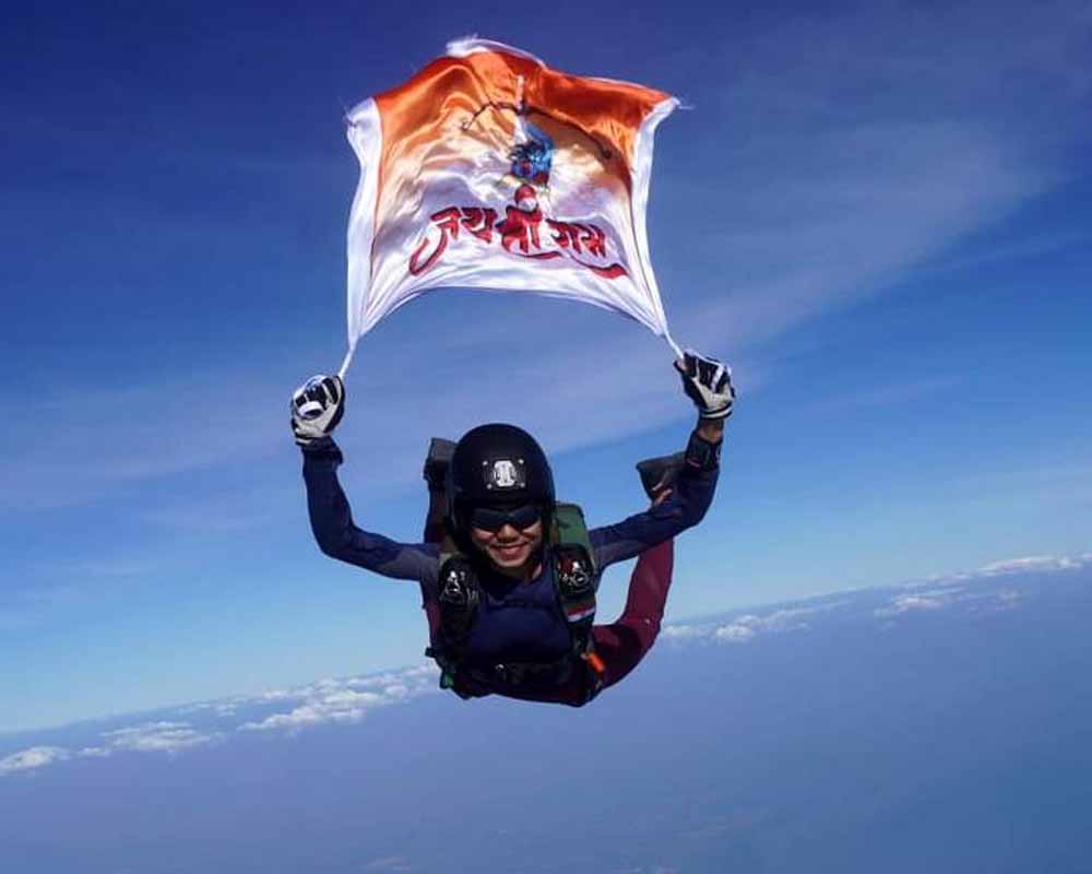 भारत की प्रसिद्ध ‘स्काइडाइवर’ श्वेता परमार ने थाईलैंड में 13,000 फीट की ऊंचाई से विमान से छलांग लगाकर गर्व के साथ 'जय श्री राम' का झंडा फहराया। श्वेता इसके लिए पिछले एक महीने से तैयारी कर रही थीं। 22 जनवरी को अयोध्या में रामलला की प्राण प्रतिष्ठा होना है। इसी को लेकर गुजरात की पहली महिला नागरिक लाइसेंस प्राप्त स्काइडाइवर श्वेता परमार ने थाईलैंड में 13,000 फीट की ऊंचाई से छलांग लगाकर झंडा 'जय श्री राम' का झंडा फहराया।