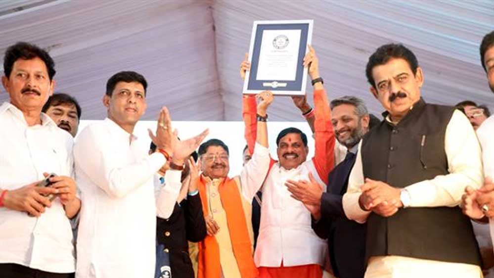 मध्यप्रदेश के इंदौर ने एक ही दिन में सर्वाधिक पौधरोपण का रिकॉर्ड बनाया, जिसे गिनीज़ बुक ऑफ़ वर्ल्ड रिकॉर्ड की ओर से मध्यप्रदेश के मुख्यमंत्री डॉ. मोहन यादव ने ग्रहण किया।
